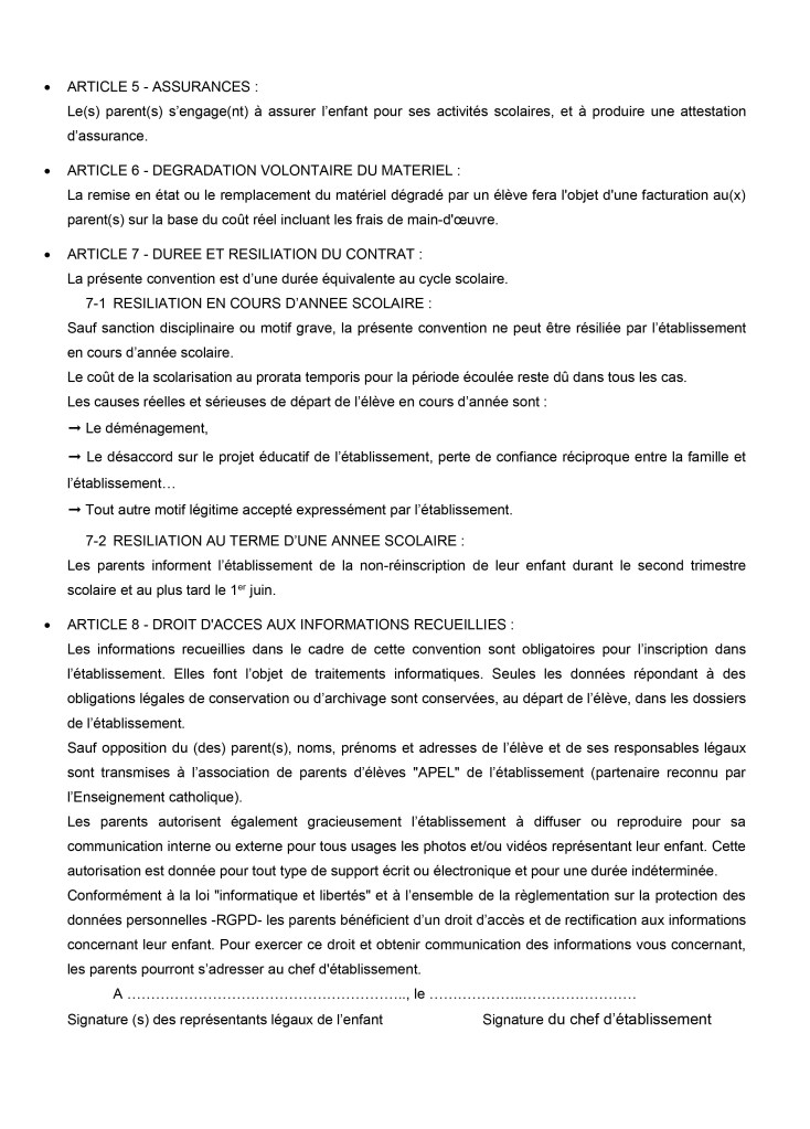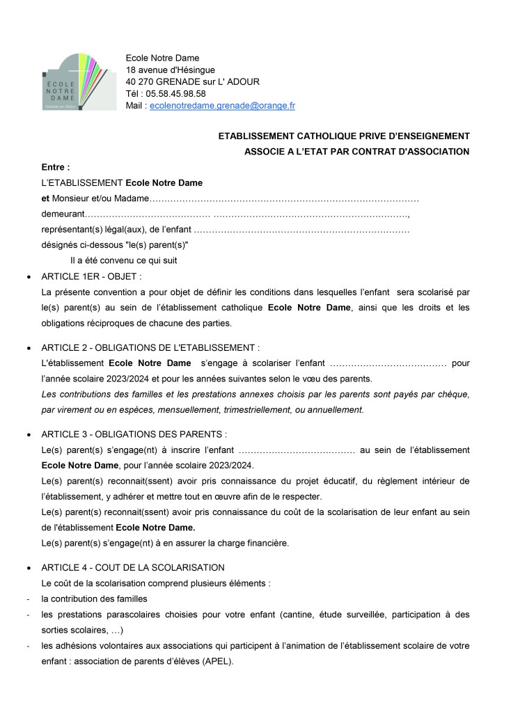 Contrat de scolarisation
