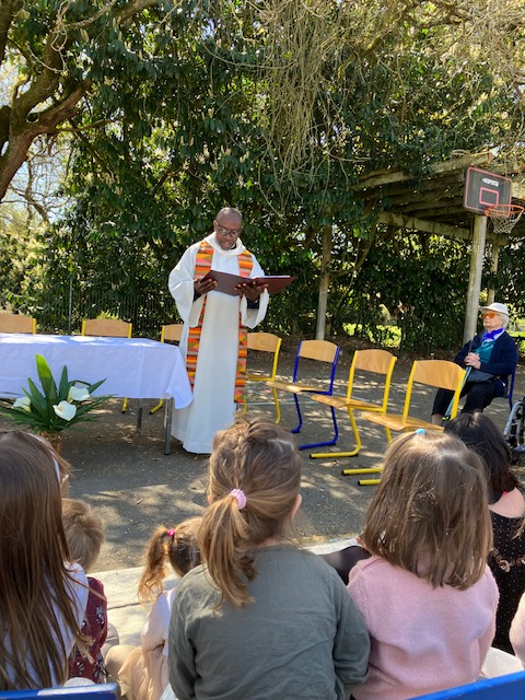 Nous nous rassemblons plusieurs fois dans l’année autour du prêtre de la paroisse pour célébrer les temps forts liturgiques (Toussaint, Noël, Rameaux, Pâques…), soit à l’école soit à l’église Saint-Pierre-et-Saint-Paul de Grenade sur l’Adour.
