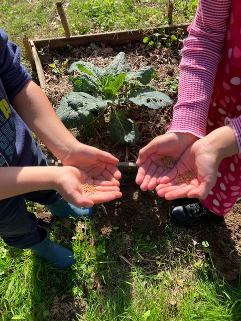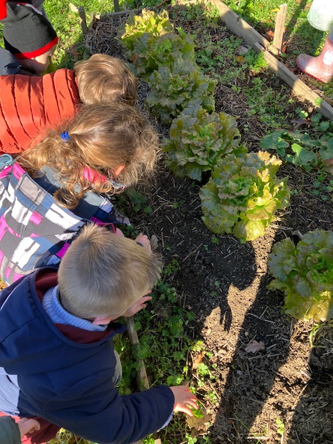 L’équipe éducative a à cœur de valoriser ces espaces en mettant en œuvre de nombreux projets pédagogiques en lien avec le développement durable, de la maternelle au CM2 : jardin potager pédagogique, verger composé de 12 arbres fruitiers (pommiers, pruniers et cerisiers), composteurs accueillant les déchets de cuisine et de cantine… Pour ce faire, nous avons choisi la permaculture ou « culture en lasagnes ». Le principe est de superposer différentes couches de matière organique (déchets présents dans l’école : cartons, feuilles mortes, herbe de tonte et compost) qui en se décomposant vont recréer un sol vivant et l’enrichir.